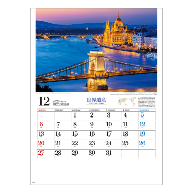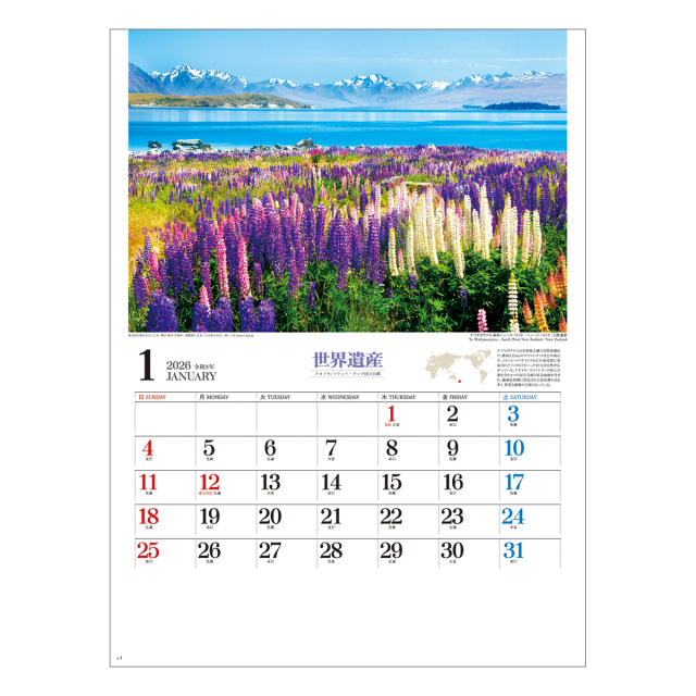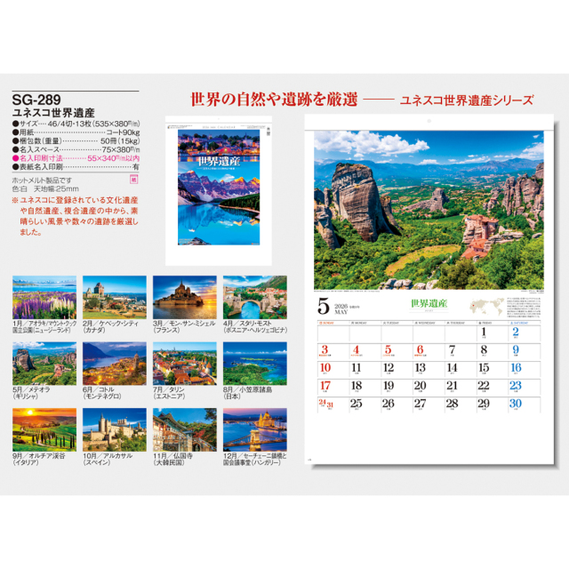 ユネスコに登録されている世界遺産の中から、厳選した写真を掲載したカレンダーです。奇跡ともいえる素晴らしい自然や遺跡などをお楽しみください。※専用ポリチューブ付