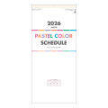 パステルカラーの爽やかな色彩、機能的な仕様、ミシン目入の3ヵ月タイプカレンダー。年表が付いて、1年間のスケジュール管理も楽々です。※専用ポリチューブ付