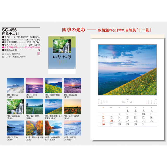 自然の尊さ、美しさ、生命の躍動感。刻々と変化する幻想的な風景を集めたモダンなカレンダーです。名入れでの贈答品、オフィスやリビングのインテリアに。※専用ポリチューブ付