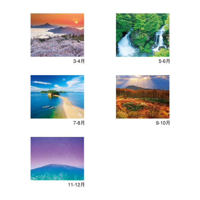 「癒やし」をテーマにした日本の風景カレンダーです。山、川、花など、秩序ある調和した自然美が、神の国であることを証明しています。※専用ポリチューブ付