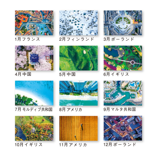ドローンから見た今までにない世界観。自由に羽ばたく鳥になったような視点の空撮は、魅力的な絶景ばかりです。世界各国の風景をお楽しみください。※専用ポリチューブ付