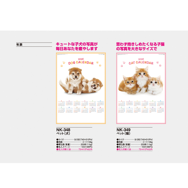 動物好きの方におすすめしたい年表タイプのカレンダーです。思わず抱きしめたくなるキュートな子猫の写真があなたを毎日癒してくれます。※専用ポリチューブ付