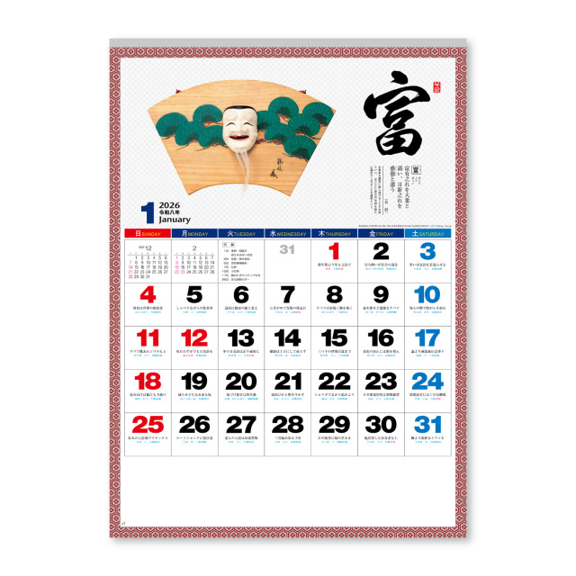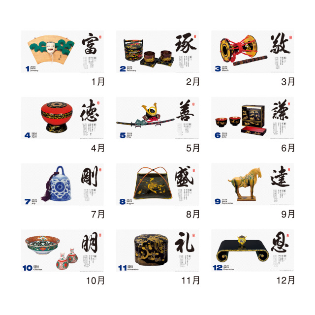 匠の名品・芸術品と、心に響く名言を掲載した格調高い1冊。和室や応接室など、大切なお客様をお迎えするのに最適な壁掛けカレンダーです。※専用ポリチューブ付