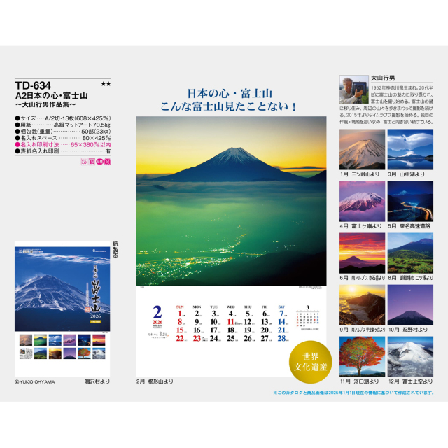 「こんな富士山見たことない!」。そんな富士の風景を集めました。日本の心・富士山の魅力をしっかりと堪能できる風景カレンダーです。※専用ポリチューブ付
