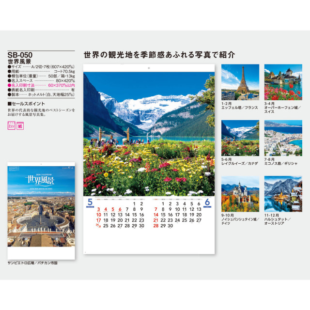 世界の代表的な観光地のベストシーズンをお届けする風景写真集。家にいながらにして世界の美しい景色に触れ合えるカレンダーです。※専用ポリチューブ付